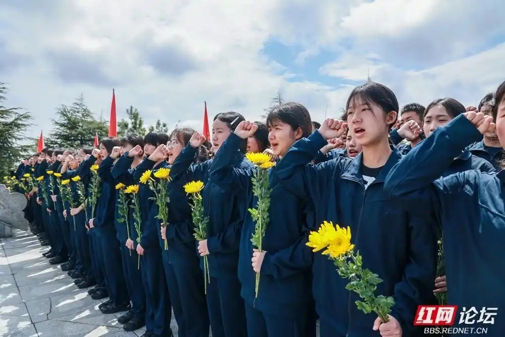 红色麻阳,薪火相传:麻阳民族中学清明祭英烈。(图源:滕树明)举报/反馈